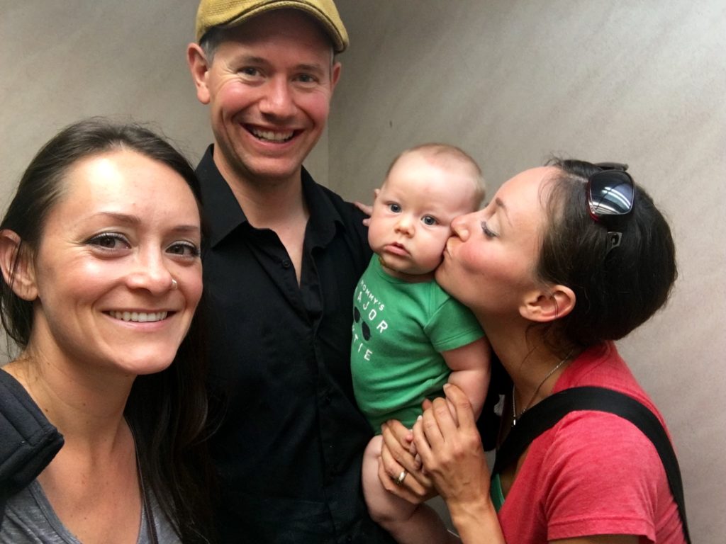 Doc Edwards among other babywearing parents at the Vaxxed Q&A in Sarasota, FL